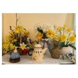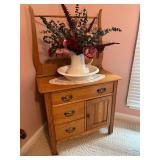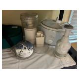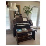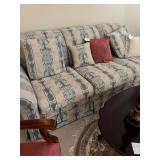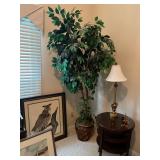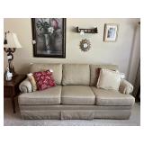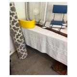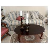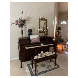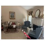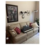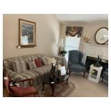 Offering: Couches, Gone with the Wind lamp, framed prints, Don Ensor prints, small tables, full size bed, Queen Anne upholstered wingback chairs, quilts, antique oak wash stand, Singer sewing machine in cabinet, sewing rocker, cherry lowboy, lamps, floor lamps, gold framed mirrors, drop leaf end table, artificial fig tree, tv stand, flat screen tv, upholstered chair, baskets, linens, holiday items, sewing rocker, rocker, plant stands, magazine rack, Mozart bust, music stand, Kimball Spinet piano, 3 drawer chest, antique school desk, China cabinet, Yamaha PSR 200 keyboard, oval coffee table, wrought & wood chairs, antique pedestal oak dining table w 2 leaves, cherry dining table w chairs, purses, GE washer, Kenmore dryer, Wrought iron bench, metal mesh table & chairs, white cupboard, recliner, 3 kids bicycles, planters, Char broil grill, Summer Waves Quick set pool, card table & chairs, yard tools, and more. |