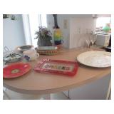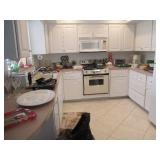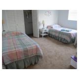 | King bed, queen bed, 2 twin beds, light wood bedroom set, set of Fiestaware, Benchmaster leather chair & ottoman, sofa & loveseat, coffee & end tables, HD TV, wicker chairs, settee & coffee table; green leather love seat, tile top dinette set, patio set, bakers rack, chests, dressers, mirrors, lamps, silk plants, sofa bed, art work, fishing gear, exercise bike, linens & kitchenware. PICTURES POSTED TUESDAY |