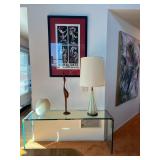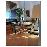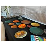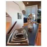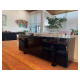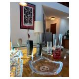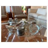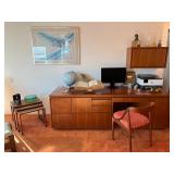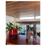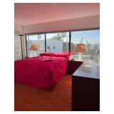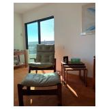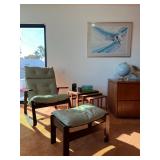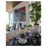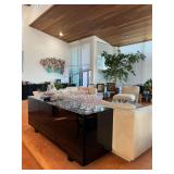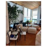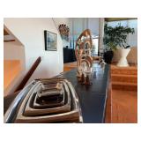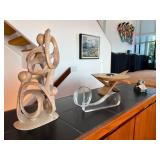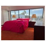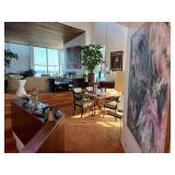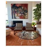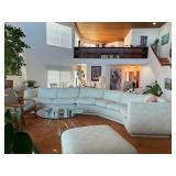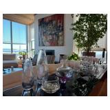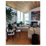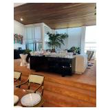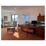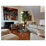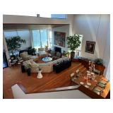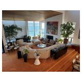 Mid-Century Low Profile Bed Frame, Mid-Century GLENN of California Bachelors Chest of Drawers, Mid-Century GLENN of California Bedside Tables, Westnofa Tufted Bentwood Rocker and Ottoman, Mid-Century Teak Nesting Tables, Bentwood Leather Chairs, Vintage Upholstered Oversized Curved Sectional Sofa and Loungers, Vintage Turntable, Collection of Mid-Century Pottery, Ceramics, and Glass, Mid-Century Ceramic Planters, Ornate Hand Carved Dining Chairs, Collection of Crystal Including Baccarat, Multiple Vintage Table Lamps, MCM Circular Dining Table, MCM Side Chairs, Lucite Magazine Racks, Sascha B Hand Painted Plates, Vintage Nambe, Astrolite Curved Lucite Bowls, MCM Brutalist Sculptures, Chris Traevare Danish MCM Carved Teak Birds,