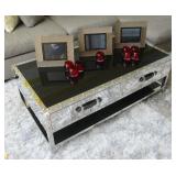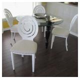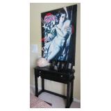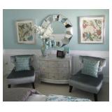WHITE LINEN SOFA WITH MATCHING CHAIR LARGE ROUND DECO MIRROR WOOD & MIRRORED GLASS TOP COCKTAIL TABLE FOLDING WOOD BAR PEDESTAL DINING TABLE W/6 CHAIRS KING-SIZE BED - BEAUTIFUL LINENS HOLLYWOOD-STYLE UPHOLSTERED CHAIRS - BLUE STEEL VELVET GLASSTOP TABLE W/4 METAL CAFE KITCHEN CHAIRS - MODERN BRUSHED STEEL QUEEN-SIZE PLATFORM BED W/ATTACHED NIGHSTAND TABLES (SWIVEL) LARGE WHIPPET STATUE PAIR - MODERN MIRRORED SIDE TABLES RAM HEAD TABLE - GLASS TOP PAIR - TURQUOISE GREEN NIGHTSTANDS WONDERFUL ARTWORK & LAMPS OVERSIZED WICKER URNS SILVER SHAG CARPETS QUEEN-SIZE SLEIGH BED - GREAT BEDDING CHRISTMAS KITCHEN ITEMS FRAMED POSTCARDS - LARGE ASSORTMENT MODERN BOTAINICAL PRINTS CHROME & BLACK LACQUERED COCKTAIL TABLE MERCURY GLASS 3-PIECE ENTERTAINMENT CENTER - BASE SYSTEM ARGE WALL CLOCK PAIR - HURRICANE-STYLE WALL SCONCES - CHROME & GLASS BLACK & WHITE ARTWORK PEN & INK ART OIL PAINTINGS - MODERN SILVER LEAF DOUBLE DOOR CONSOLE - MIRROR TRIMMED MIAMI - PRINTS CUBA PRINTS GRAY SECTIONAL SOFA SILVER CHEST W/ROUND BEVELED MIRROR - UNUSUAL BAR - MEMORABILIA KITCHEN & APPLIANCES PAIR - CHROME STUDENT STYLE LAMPS'