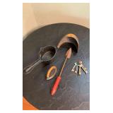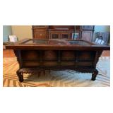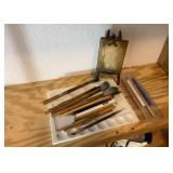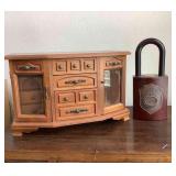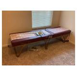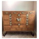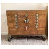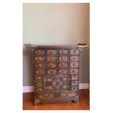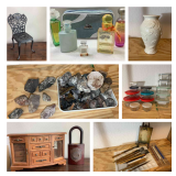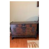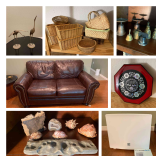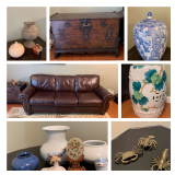 Sale includes several Korean wood trunks and chests, antique apothecary chest, Acorn stairlift (purchased in 2020), heated massage table, Stanley leather sofa and loveseat, lots of brass, household goods, tools, acetylene torch and more.