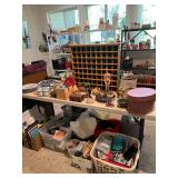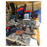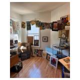 Original artwork Art supplies Paints Canvases Paper Paint brushes Linens Linen cabinet Grill Glass top table Wicker patio chairs Umbrella Kitchen island Storage bench Leather recliner Wicker trunk Ice cupboard File cabinet Books Bookcase Tv Cradle Dressers Easel Clothes Tools And so much more!