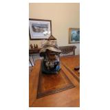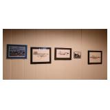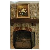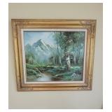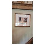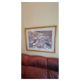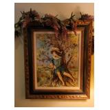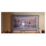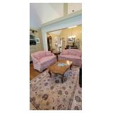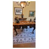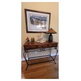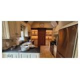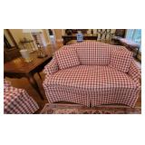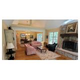 large floral paintings on canvas, metal tree wall art, key oil on canvas painting, honcho boots., black chair/ottoman, wood coffee table, Red and white checkered love seats., South of France by heritage side table, floral oil on board,wooden end table, Howard miller grandfather clock, Hutch/server wheat motif, Bose stereo/CD player, RCA professional series cd-9400 compact disk changer/1bit D/A conver optical digital output, Bose cd player, Onkyo cassette player, Drexel Server, metal wine rack, bench with cushion, floral upholstered chair, wood/leather top desk, Medina oil on canvas, metal lamp, Hooker furniture console table Kitchen