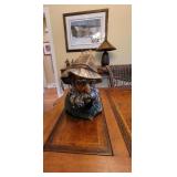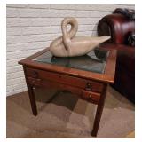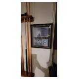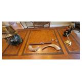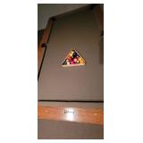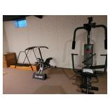 Weider 8515 home gym, Sharper Image Rider total body, Marathon 1500M treadmill, Fighter jet/ Navy framed artwork, Wicker chairs, Wicker table, red leather love seats, Shadowbox coffee table with 3 drawers, Shadowbox end tables, Wood Olhausen pool table, solid wood kitchen dining table with 7 chairs, Solid wood buffet, Christmas décor, Framed American advances in Aviation pictures, carved wooden swan Garage
