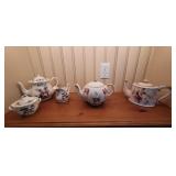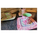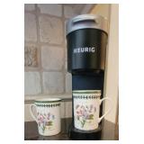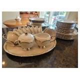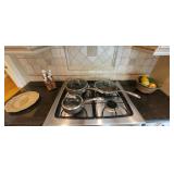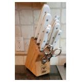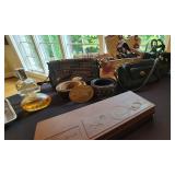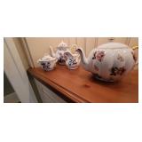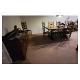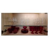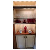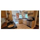 Wusthof knives, Belgique pots &pans, Hall pottery, Pyrex, Bauer Los Angeles, Avon cape cod, Red glassware, Elgrave tea pot, Burton &Burton tea pot, Wedgewood Williamsburg Potpourri tea set, Botanic Garden, Flintridge China by Gorham, Keurig, Amana radarange microwave oven, Atlantas crystal, Hamilton beach coffee maker, Oak table with 2 chairs Den