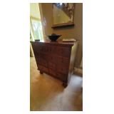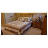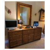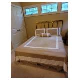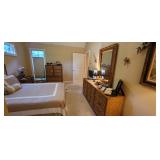 Brass Headboard queen mattress, bamboo/ woven brass handled 10 drawer dresser and mirror/ high boy/night stand, magnavox TV with DVD player, Framed H.C Meyer oil on board, women's apparel sizes M-L dress 12 J. Jill, Liz Claiborne, Men's Apparel Orvis, M-L and more! Loft
