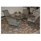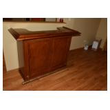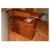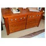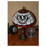 Furniture Mission style wooden king headboard & footboard with Sleep Number king size Mattress Softaly electric recliner sectional leather sofa Walter E Smithe upholstered wing chair Lay-z-boy recliner chair Pier One fabric round ottoman Coronado Furniture entertainment center Bombay Company wooden entry table Bombay Company half moon shaped entry table Oak dining table (+ 1 leaf) with six spindle back chairs Sherri Whitehead painted cabinet with large mirror Shabby chic magazine rack Two tiered side table Decorative wrought iron and wood plant stand Oriental style table lamp 2 wood corner cabinets with bevelled glass doors Wooden 6 drawer dresser Full length wooden pedestal mirror Decorative black wrought iron lamp with burlap shade Oval shaped mirror with painted frame Wooden jewelry armoire Two tiered metal plant stand Glass front 3 shelf cabinet Wisconsin Badgers Tiffany style desk lamp Large oak style desk with two drawer file cabinet attached Metal 2 drawer file cabinet Mid-century modern buffet Wooden magazine side table Shabby chic style oak coffee table 4 oak swivel spindle back bar stools Oak side table Microfiber recliner sofa Decorative Metal beer cooler and wine stand Freestanding bar with brass foot rail Patio set with 4 metal and fabric chairs, table and umbrella Hanging tapestry with decorative holder