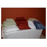 Linens Assorted bed sheets Assorted pillow cases Assorted towels Assorted blankets Nostalgia Home Fashions king size bedspread with matching pillow shams Assorted bath rugs