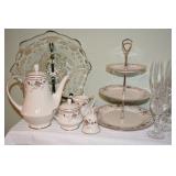 China/Crystal/Silverplate/Stoneware Noritake “Adagio” china, complete set with serving pieces Jarolina China from Poland - Complete set with serving pieces Assorted crystal stemware Marquis Waterford bowls Assorted decorative crystal pieces Silver plated flatware Pfaltzgraff Winterberry stoneware complete with serving pieces and stemware Pfaltzgraff soup terrine