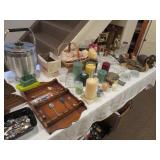 Furniture Antique to Modern! Queen Beds, Dressers, Oak Dining set, Oak Desk, Vintage ladies desk, Collectables! Kachina Figurines, American Indian Dolls. Cups & Saucers, Teapots, Depression Glass, Pottery, Crock, Crock jugs Knick-knacks, Prints, Holiday items, Costume Jewelry Household, Quilts, Blankets, Towels, cleaners Ladies clothes L-XL, short, size 9 shoes, Men's Black Leather Jacket-M Schwinn Pro exercise Bike, like new, Wii Sport system, Health O' Meter Dr. Scale Electronics, Cassettes, Cds, Videos, Insigna Flat Screen Bookcases, Books, Files, File cabinets, 4 styles of Office Chairs. Card tabe & chairs, Tools, tool boxes, Lawn care, Saws, Shovels, Ladders, Wrought Iron Porch Chairs, Compressor, Trek 880 sport 3 speed, Murray Ultra Trek, 5 speed bicyle, wheel chairs, walkers, lawn chairs, Bocce balls, Corn Hole box, wheel barrels, table top grill, planters, Poulan leaf Blower, And so much more! |