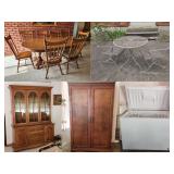 = Three Pieces = 7' L x 20" W x 5' 10" T = Good Shape = Clock Included = Contents In Drawer Included = LAMPS & TV NOT INCLUDED