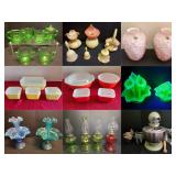 = 24" L x 12" W x 37.5" T = Contents Included = E.O. Brody Green Glassware = Tea Sets = Vintage Razors