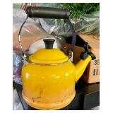 Kitchen · Le Creuset Yellow Enamel Tea Kettle · Mr Coffee Machine · Vintage Ceramic Grape Salt and Pepper Shakers · Vintage 1930’s English London Sparklets Seltzer Siphon · Glassware · Mortar and Pestle