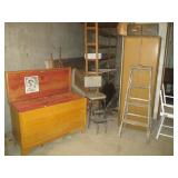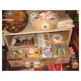 ITEMS INCLUDED IN THIS SALE, SPORT CARDS 1952 -1965 SOME STARS BUT MOSTLY COMMONS, 80'S & 90'S BASEBALL AND FOOTBALL WAX BOXES, STERLING SILVER RINGS, HOUSE WARE, GLASS WARE, PATIO FURNITURE, 1960'S JANTZEN SPORT POSTERS, VINTAGE SUITCASES, SEARS SEWING MACHINE & SEWING ITEMS AND SEWING CABINET, LOWREY ORGAN, BELLEEK TES SET AND BELLEEK SHAMROCK ITEMS, ART, SOME AMMO 22L AND 357 & 9MM, COLLECTIBLES AND MORE!!