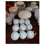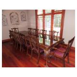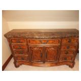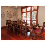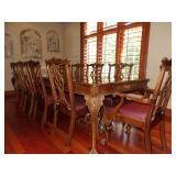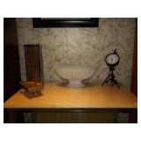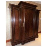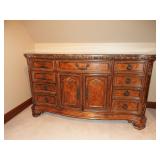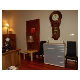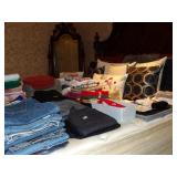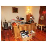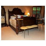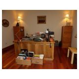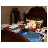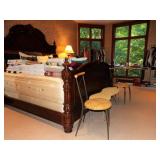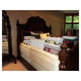 FURNITURE + HOME DECOR Bernhart king-size bed with matching marble top nightstand and armoire with side shelves, media, drawers, and mirror. Whirlpool Duet gas dryer and Maytag Heavy Duty Plus Electronic Gas Dryer. Kitchen/dining room table with wood top and metal/iron sides and 6 chairs. Mirrors, wall art, oak filing cabinets, 2 desks, iron/metal twin headboard, large cherry dining room table and chairs, barstools, 6 mission-style wood chairs, gun cabinet, coffee tables, side tables, sofa tables, linens, throw pillows and more. KITCHEN: Small appliances, Keurig coffee machine, Kitchenaid blender, Fiesta nesting bowls, dinnerware sets, barware, flatware, general kitchen items, and more. CLOTHING + JEWELRY Lady's clothing and jewelry. GENERAL: