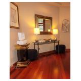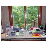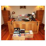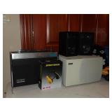Cleaning products, candles, vases, holiday decor, Infinity wood tower speakers, DBX wood speakers, 2 Miller&Kreisel MX-200 subwoofers, Elan home system HDC 2000, Yamaha CD Player, Donaldson AirCel and Ultrafilter VF Refrigerated Air Dryer, Denon equipment, flat screen TV's, Murry City Star Bike, Pacific Quick Silver Bike, Panasonic DX-1000 Bike and a Motobecane Cafe Latte Bike, books, games, light fixtures, LG stainless refrigerator, luggage, Playstation 1 console with 2 controllers, and more.