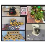 Here are just a few of the items included in this sale: Antique Shaeffer Piano W/ Bench Modern Wood King Bed W/Matching Nightstands FRIGIDAIRE Upright Freezer Kennmore Upright Freezer Eurocave Retro Wine Fridge, Needs Work Kitchen Aid Mixer Kenmore Microwave LG Front Loading Stainless Washing Machine LG TrueSteam Stainless Electric Dryer TCL Roku TV Three Typewriters Tony Biagi Framed Print And Desk Lamp Framed Acrylic Pastel With Baskets Golden Oldies Hand Blown Modernize Punch Bowl Set Rustic Table Setting W/ Wood Platters Mexicali Platter And Bowls Cobalt Blue Dishes China, Metal And Iron Tea Sets Asian Inspired Decor Ceramic Asian Serverware Cast Iron Pans And Knifes Crock Style Blue And White Pottery Items Dansk Servingware Set Eclectic Stoneware Bowls And Vases Canning And Canisters Baking Lot Including Pyrex, Corning Ware, And Pampered Chef Vintage Steam Irons, Brownie Camera, Rotary Phone And More Board Games, Puzzles, Electronic Darts Lincoln Logs, Legos, Doll Clothes And More Camping Lot Weathered Teak Table W/6 Chairs Terracotta Chimenera Planter Pots And Patio Decor Potted Plants And Petrified Wood TORO Super Recycler Lawn Mower Black & Decker Workmate, Weed Eater And More Craftsman Chainsaw And Black & Decker Hedge Trimmer Greenworks Pressure Washer And Water Vac Remington Pole Saw, Ladder, And More Mystery Lot Of Various Sizes & Types Of Wood and more!