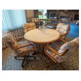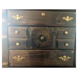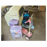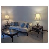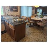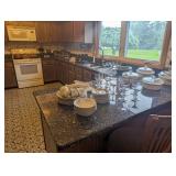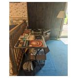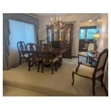 Ethan Allen Georgian Court end table, Ethan Allen oval coffee table glass top, Ethan Allen side tables, Ethan Allen 4 drawer cabinet, Ethan Allen sofa, console table, display cabinet with light, lamps, Ethan Allen upholstered arm chairs, dining room table with leaf and six chairs, formal China cabinet, tuffted leather chairs, executive desk with drawers, burgundy leather chair, office desk with file cabinet, two drawer lateral filing cabinet, monitor, HP Envy 5540 copier, pictures, world globe, Bombay desk and bench, oil on canvas paintings, rolling utility cart, Sharp Audio System, Sony equipment, Panasonic TV, LG TV, Sony TV, Sharp speakers, LOTS of records, comic books, Beatles signed poster, Detroit Pistons poster, Detroit Lions mugs, vases, jewelry, watches, Coach purse, crystal bowls. Kitchen: Kenmore stove, Kenmore microwave, Kitchen Aid with attachments, Cuisinart set of knives, Ninja blender, Keurig, Cooper chefs cooking ware, Noritake smokey brown gobblets, dining table with 4 chairs, dinnerware set, stainless steel flatware set. 2nd floor: Queen bed with mattress and box spring, night stands, dresser with mirror, lamps, TV, paintings, arm chairs, side tables, wingback chair, pictures, lots of lamps, Art Van chair, decorations, side chairs and floral bench, display cabinet, Nordic Track WalkFit, LOTS of parfumes and hats. Outdoor: Two patio tables with umbrellas and chairs, outdoor furniture, swing, plants, pots. Garage: Montgomery Ward Freezer, bookshelves, racks, children toys, books, clothes, Disney Frozen mini scooter for kids, X-Mas decorations, tools, Shark Swivel 180 scrubbing vac, Coleman cooler, Black and Decker tools, ladders and lots more