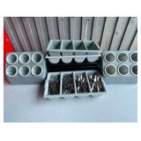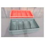 Set of (6) Plastic Silverware Bins,(2) Dispensers, and Spoons/Forks