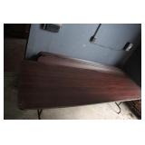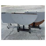 Rectangular Folding Table on Wheels and (2) Round Folding Tables on Wheels (One of Round 1/2 Tabletop is not-attached)