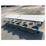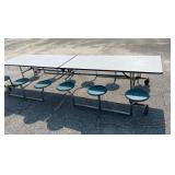 School Cafeteria Lunch Table on Rolling Wheels with 12 Attached Seats, Missing Part of Table Top