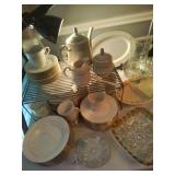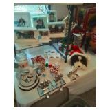 Every room in this house is loaded with items for sale. Formal Living Room: Upholstered matching sofa and loveseat, 2 wooden side tables with glass inserts, glass lamp, wooden coffee table with glass top, shelf and drawers for storage, ceramic swans with inserts for flowers, Large china hutch with tons of storage and beveled glass doors for display from Haverty's, wooden sofa table with glass top and wicker shelf on the bottom, Brass ship candle holders, artwork large goddess statue and more. Dining Room: Beautiful Dining room table with 3 leaves, 2 captains chairs, 6 side chairs all with leather seats, Crystal (Waterford, Lenox, Fostoria), silver plate, wine glasses, pitchers, decanters, china, blue Fostoria Fairfax pieces, glassware, serving pieces and much more. Office: Large display case with lighting in the side pieces, small metal and glass square table, upholstered loveseat, lamps, bronze standing women floor lamp, wine and bar accessories, glassware, chugging friar monk decor, Bombay standing hound wine bottle holder, train artwork, decorative pieces, Hummels, Lladro and more. Office closet: DVD's, CD's, office products, cameras, bookends and supplies. Den: Brass lamp, candle holders and decor, lots of books, upholstered reclining loveseat with matching sofa, large glass coffee table with metal accents, sand artwork, pottery, wooden sofa table with glass top, small 3 glass shelf display cabinet, silk florals, home decor, artwork, prints, metal lamps, small book end table, leather electric recliner, oversized upholstered recliner, marble sofa table with glass top and matching end table, cookbooks and more. Loads of home decorative items, collectibles, porcelain decor, serving pieces, polish pottery, entertaining items, picnic basket, small shadowbox and more. Kitchen: Marble table with glass top and 2 end chairs and 4 side chairs, bakers rack, small kitchen appliances, dishes, glassware, corning ware, pyrex, pots and pans, ceramics, large pasta bowl, bakeware, toaster oven, electric wok, juicer, margarita machine, Nespresso coffee maker, Mr. Coffee coffee maker, hand mixer, hand blender, utensils and much more. There is also a Samsung stainless steel french door refrigerator with flex drawer - bought in 2020. Master Bedroom: King size bed with 4 poster headboard and footboard, matching nightstand, TV cabinet with storage and a 42" Insignia flat screen TV, dresser with matching mirror, linens, lamps, footstool, pillows, clothing, shoes, scarfs, sea shells, bathroom items, cleaning products and more. Guest Bedroom 1: Toys, wooden sofa table with glass top, electrolux vacuum, office chair, radio/record album player, camera tripods, games, puzzles, stuffed animals of all sizes, legos, cars, trucks and decor. Guest Bedroom 2: Christmas decor with Kinkaid snowman, Christmas houses, winter displays, ornaments, lighted decor, stocking and stuffed animals. This room also has Coach handbags, Dooney and Burk, Jewelry, watches, pocket knives, rings, wallets, necklaces and much more. There is also a collection of geocaching coins. Laundry Room: Kenmore stainless steel electric front load washer and dryer, both with pedestal drawers. Garage: Frigidaire stainless upright refrigerator with top freezer, whirlpool chest freezer, lots of dog items, dog strollers, walker, holiday items, yard tools, tons of lightbulbs, suit cases, hand tools, electrical items, ladders and more. Outdoor: glass top table with 2 chairs, yard art, camping chairs and more outdoor items. |