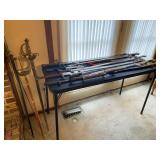 First floor: Tempus Fugit grandfather clock, Ajax Greek marble bust, American of Martinsville cabinet, Drexel console table, watches: Elgin, Bulova, Movado, Wittenauer, Lassale, collectible coins, pocket knives, vintage Playboy, arrowheads, Yashima Austin sculpture, Pagoda lamp, Prince Rama bronze statue, Wurlitzer upright piano, Celestron C80 telescope, United States coin proof sets, stamps, Mayen chess set, swords, Swarovski crystals, Kutchenreuther China set, Potbellys figurines, Sklar Peppler China cabinet, Sklar Peppler dining table and chairs, mid century modern bar cart, Ajka Marsala crystal snifters, head of victorious athlete, Renoir print on canvas, vintage Hamilton Beach blender, wicker table and chairs, Sango Artistika dishes, vintage Bosson chalk ware busts, Corelle dishes, linens, military and sports caps, US Army uniform, vintage bar and barstools, Tiffany style lamps, carved corner chair, wicker console and end tables, Samsung TV, Asian wall reliefs, Greek and Egyptian wall reliefs, Sligh desk, Marto mounted knights, Replogle world globe, Sentry safe, armoured knight, Britannica encyclopedia sets, beer steins, model ships, Lane brutalist wardrobe and dresser, Lane brutalist full bed, brass easel, Tansu cabinet, vintage cameras, vinyls Basement: Lionel trains, vintage toy cars, hand tools, Sentry 14 gun safe, Timber Ridge gun safe, beer steins, Blade CX2 remote control helicopter, Blade 400 3D remote control helicopter, VR 500 pro rowing machine, Nordic track treadmill, Samsonite luggage, vintage ceramic Christmas tree Garage: Craftsman snowblower, Troy Bilt push mower, Black & Decker trimmer, faux plants, patio chairs, insecticides and pesticides, yard tools, extension ladder, ladder