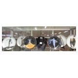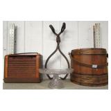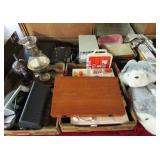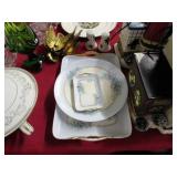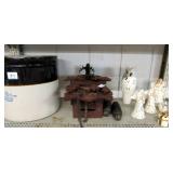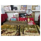 ANTIQUES & COLLECTIBLES 5pm: Art Glass; Clear Glass; Porcelain; Lenox; Silver Overlay Console Bowls and Serving Pieces; Oil Lamp; McCoy Pottery; Watt Apple Pattern Pitchers; Hand Painted Hong Kong China; Aurora Derby Horse Race Game w/Original Box; Vintage Steel Spring Hobby Horse; Antique Ice Tongs; Old Radio; 3 Gallon Crock; Cuckoo Clock w/Weights; Trains and Train Accessories; Franklin Mint Erte Collector Plates; Comics; Stamps; Vintage Baseball Glove; Sports Photos; German Made Violin w/Bow & Case; B.C. Rich Platinum Series Lime Green Electric Guitar w/Gig Bag; Antique & Collectible Glass, Pottery, China & Figures; Paintings; Prints, Etc.