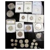 COINS - 5pm: Graded Coins; Morgan Silver Dollars; Walking Liberty Half Dollars; Barber Silver Dimes; Mercury Dimes; Silver Half Dollars; Lincoln Penny Album; U.S. Proof Set; U.S. Mint Set; World Coins.
