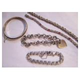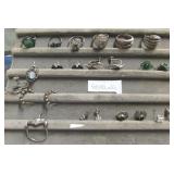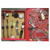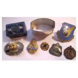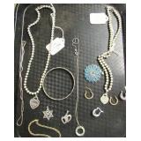 JEWELRY - 5pm: Gold Victorian Ring; Diamond & Gold Heart Pendant; 14K Aquamarine/Diamond Pendant w/Chain; 14K Pearl Earrings; Selection of Sterling Jewelry to include Tiffany Necklaces; World War II Sterling Bracelet; Vintage Pins & Fobs; Trays of Costume Jewelry & Watches.