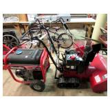TOOL ROOM - (IMMEDIATELY AFTER DOCK & GROUND AREA): Miller Gold Star 300SS Direct Current Arc Welding Power Source; Sears 5/24 Trac-Plus Snow Blower; Craftsman Power Snow Thrower; Homelite 3500 Portable Generator on Wheels; Power Washers; Air Compressors; Shop Vacs; Electrical Boxes; Spools of Electrical Wire & Conduit; Lawn Mowers; Weed Whackers; Leaf Blowers; Lawn Spreaders; Wheel Barrow; Trimmers/Edgers; Hose Reels; Chain Saws; Bikes; Sinks; Tubes of Dynaflex 230 Waterproof Sealant; Tires; Kitchen Cabinets; Shelving; Ladders; Doors; Car Ramps; Car Parts; Tool Boxes; Gas Cans; Outdoor Chairs; Animal Cages; Fans; Heaters; Hand Tools, Garden Tools & Power Tools.