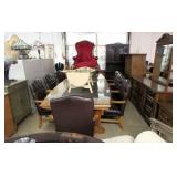 FURNITURE - 7pm: Antique General Store/Post Master's Desk (Super Cool); Antique 2-Door Armoire; Selection of Antique Doors; Vintage Palmenberg Cavanaugh Dress Form on Iron Wolf Form Co. Stand; A Must See Boat Shaped Oak Conference/Dining Table w/Glass Protective Top and 8 Tufted Back Stretcher Base Arm Chairs; Mid Century Modern Dining Room Set w/2 Pc. China, Console, 4 Chairs, Table and 3 Boards; High Boy w/Broken Arch Top; Curio Cabinet (White Finish); Oak Dresser w/Mirror; Victorian Style Button Tufted Arm Chair; Pine Bedroom Set w/High Chest, Low Chest, Mirror, 2 Night Stands and Head Board; Roll Top Desk; Mediterranean Style Bedroom Set w/Triple Dresser, Mirror, Armoire and Night Stands; 4-Drawer Lateral File Cabinets; Microfiber Sofa; Occasional Tables & Side Chairs; Lamps & Lighting; Bedding; Exercise Equipment; A Full Mix of Victorian, Antique, Depression & Contemporary Mahogany, Oak, Walnut, Cherry, Pine & Maple Dining Room & Bedroom Sets Individual Pieces; Patio; Kitchen; Upholstered Furniture; TV's & Electronics; Large Appliances.