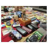 Every Week 50+ Tables with Everything Imaginable including Dishware; Kitchenware; Flatware; Glassware; Stemware; Giftware; Bakeware; Corningware; Pyrex; Pots & Pans; CDs, DVDs, VHS Tapes & Players; Game Systems & Games; Toys; Dolls; Puzzles; Books; Stuffed Toys; Crystal; Press Cut; Art Glass; Depression Glass; Porcelain; Ceramics, Decorator Items; Pottery & Crockery Items; Small Appliances; Electronics; Baskets, Decorator & Holiday Items; Sports Collector Cards; Etc.