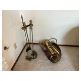 - Lot #8 - Vintage Brass Fireplace Tools & Misc. Wood