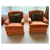 - Lot #15 - Two Vintage Peach Colored David-Allen Rocking/Swiveling Armchairs