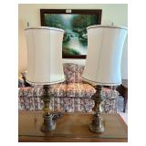 - Lot #35 - Two Vintage Heavy Brass Table Lamps - (Work)