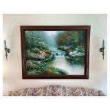 - Lot #34 - Large Original Oil on Canvas by Rosie w/ Two Wall Sconces