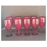 - Lot #65 - Vintage 9 pc set of Cranberry Glass Stemware