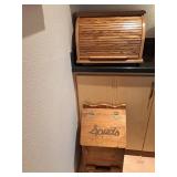 - Lot #97 - Wood Roll Top Bread Box & Wood Spuds/Onion Cabinet