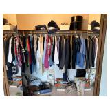 - Lot #150 - Closet full of Men's & Woman's Clothing: Suit Jackets, Ties, Shirts, Pants, Shoes, Wig & More