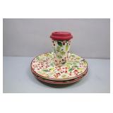 Longaberger Holly Berry Dinner Plates, Travel Cup
