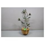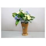 Longaberger Chives And Small Flower Pot With Protector And Flowers