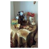 This is a darling sale with lots of interesting home decor!Large Tweed Sofa Vintage Rolling Tea Cart Twin Bed/With Spread and Bolsters Bookcase Curio Shelf Pair of Small Chests/Nightstands Dark Wood Dining Table and 4 Chairs Glider Chair with Gliding Footstool Occasional Chair Bistro Set Two Wood Rocking Chairs Hand Painted China Items Kitchen Items Christmas Ladies clothing Costume Jewelry |
