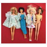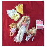 Barbies ONLY in this sale. Many 1966 bodies with 1975 heads, made in Malaysia, Indonesia, Philipines, Taiwan, China, and Japan. Kens. Kelly Dolls. Clothes. Some furniture and accessories. Cases.