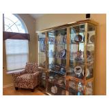 Scheduling appointments now through September. Upholstered accent Broyhill living room chairs - $175 Each 3 piece Gold-tone curio cabinet that lights up - $375 7 piece King walnut master bedroom, including base box, headboard, tall chest, bureau with mirror, and 2 night stands - $700 Black office bookshelves - $75 Large office desk - $175 Small office desk - $125 Black leather recliner chair - $250 Century dining room table with 3 leaf and 6 chairs - $450 Century side board sever - $300 Brown kitchen table with glass top and 4 chairs - $275 Raymor and Flanagan grey brushed suede upholstery loveseat and sofa electric recliners - $375 each 7 piece patio set with 4 chairs and umbrella plus umbrella stand - $150 Maxfire grill with cover -$50