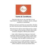 Enter the sale at your own risk! Brie’s is not responsible for illnesses, accidents, injuries, allergic reactions or sensitivities of any kind. All items are sold as is and have no warranties. All sales are final. Examine items carefully before purchasing! We reserve the right to check large purses or bags at the cashier station and to charge correct pricing on items which have removed, changed or altered price stickers. Cash, checks (run through the TeleCheck system,) VISA, MasterCard, Discover Card and American Express accepted, debit or credit card totals over $10 appreciated. Brie’s does not charge you fees to use cards!