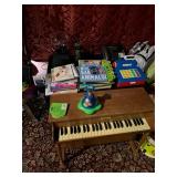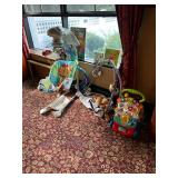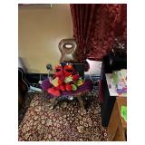 Giltwood mirror, set of 3 French Brutalist chairs, marble top server with brass mounts, home theatre seating & electronics, Leroy Neiman, Salvador Dali & other artwork, glass dinette with black leather modern chairs, quilted chaise, counter stools, Asian screen, Sojin black lacquer console piano, sofa with pair of chairs & ottomans, lots of bags, clothing, books, baby furniture, toys & clothes, popcorn machine, china, bikes, chandeliers & more |