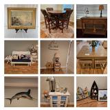This estate has lots of fun beachy items to help decorate your home or room. Pub table, wicker furniture, John Perry sculptures, lamps, sofas, storage. SnowBabies, Byers' Choice Carolers, Dept 56, Jack O'Lanterns, Halloween, Christmas, tools, yard gear. Something for everyone.