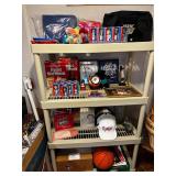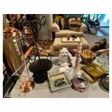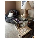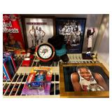 Living room Grey Recliner chair, Grey recliner sofa, Grey recliner loveseat, metal/stone/glass console table, metal/stone/glass end table, metal/stone/glass coffee table, Framed 3D Beach/Lighthouse picture, Brass/stone sailboats, Maurizio Tempestini Brutalist tall pair of lamps, fireplace screen, fireplace tool set, Entertainment stand, Sports cards Basketball/ Football/ Hockey, Black Floor lamp, Signed Detroit Shock jerseys, Signed Detroit Shock Basketball, Detroit Pistons pin collection, NBA Detroit Pistons Barbie, City Scape mirror art, NBA Hoops official Basketball cards, 1989 Pistons hats, WWII, civil war authentic collectibles, WNBA Detroit Shock Bobble head figurines, Signed Detroit Shock Basketballs, Sports collectibles