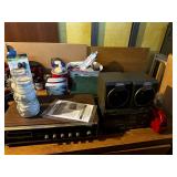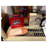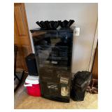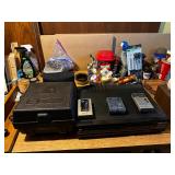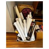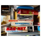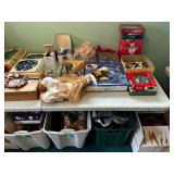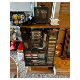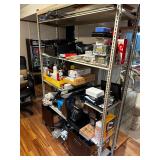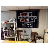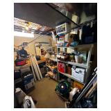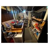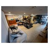 Basement NBA Detroit Pistons posters, Loveseat, Loveseat with ottoman, Mitsubishi flat-screen TV, Framed ship painting, media storage cases, fishing poles, Gazelle edge exercise machine, Rival seal a meal, crockpot, GE buffet server, life jackets, Quarterback Pass Attack game, Olympia Beach girl slot machine, NBA Detroit Pistons Bobble head figurines, NHL Detroit Red Wings collectibles, party decorations, Brother printers, Nikon camera, JVC stereo, display case. Antique bar cart, rolling storage cabinets, body fit exercise bike, picture frames, rocking chair, bench, coffee table, end table, magic chef microwave, magnavox turn table, home medics anit gravity recliner, movie posters/ gone with the wind, casablanca wizard of oz, The Bradford Exchange collectible plates, assorted LP records, Craftsman tools, welding tools, Emerson 8 track player. Wagner, Makita, Craftsman.